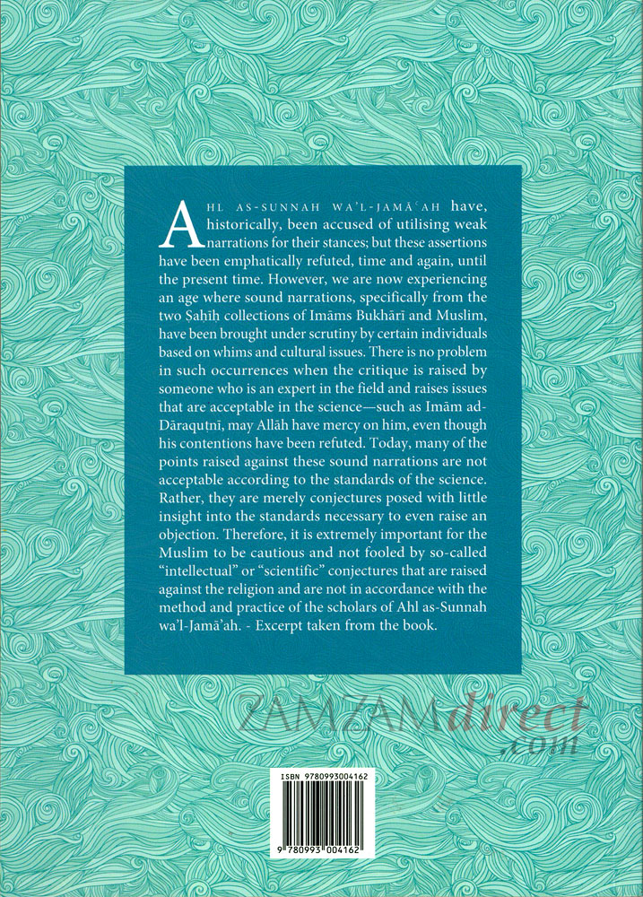 Ahl as-Sunnah wa al-Jamaah have, historically, been accused of utilizing weak narrations for their stances; but these assertions have been emphatically refuted, time and again, until the present time. However, we are now experiencing an age where sound narrations, specifically from the two Sahih collections of Imams Bukhari and Muslim, have been brought under scrutiny by certain individuals based on whims and cultural issues. There is no problem in such occurrences when the critique is raised by someone who is an expert in the field and raises issues that are acceptable in the science -such as Imam ad-Daraqutni, may Allah have mercy on him, even though his contentions have been refuted. Today, many of the points raised against these sound narrations are not acceptable according to the standards of the science. Rather, they are merely conjectures posed with little insight into the standards necessary to even raise an objection. Therefore, it is extremely important for the Muslim to be cautious and not fooled by so-called intellectual” or “scientific conjectures that are raised against the religion and are not in accordance with the method and practice of the scholars of Ahl as-Sunnah wa al-Jama’ah. – Excerpt taken from the book.