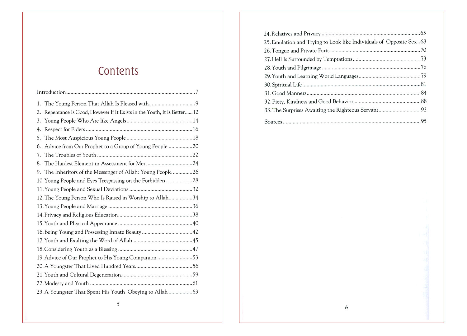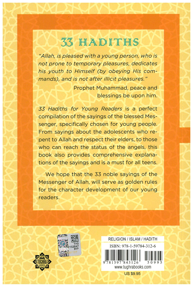 33 Hadiths is a compilation of the sayings of the Prophet Muhammad specifically chosen for young readers. From sayings about the adolescents who repent to Allah and respect their elders, to those who can reach the status of the angels, this book also provides comprehensive explanations of the sayings and is a must for all teens. We hope that this collection serves as golden rules for the character development of our young readers.