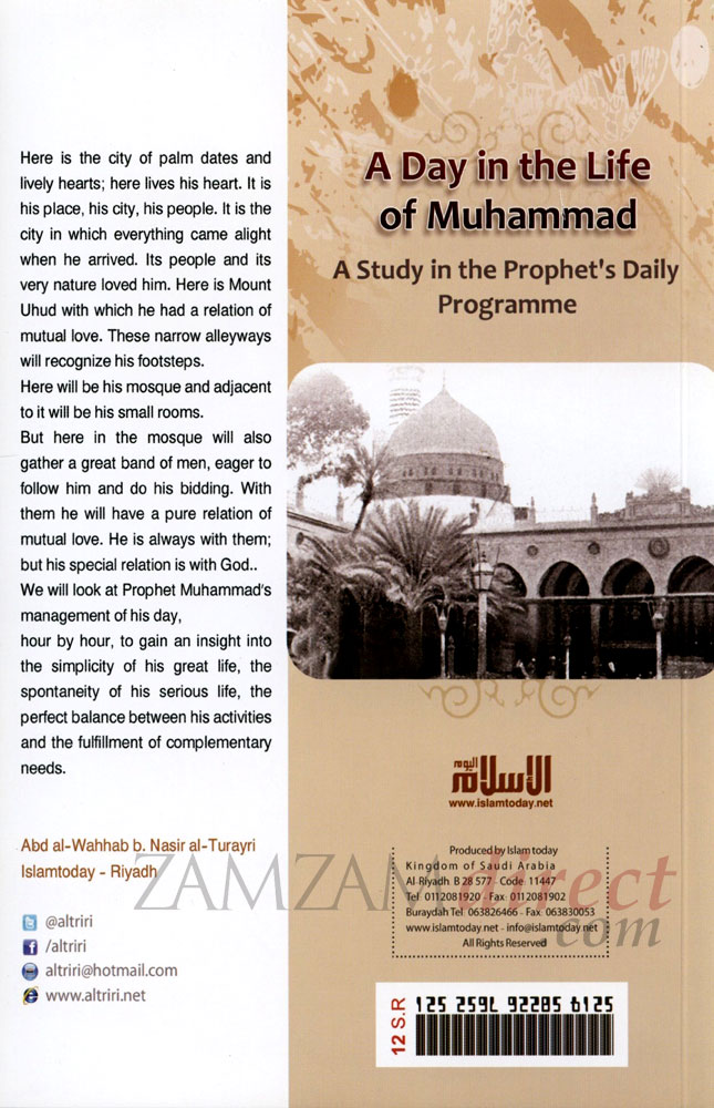 In this book the author discusses at Prophet Muhammads management of his day, hour by hour, to gain an insight to the simplicity of his great life, the spontaneity of his serious life, the perfect balance between his activities and the fulfillment of complimentary needs.