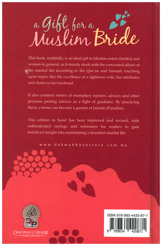 This book, truthfully, is an ideal gift to Muslim sisters (brides), as this book mainly deals with the concerned affairs of newly married life according to the Qur’an and Sunnah; touching upon topics like the excellence of a righteous wife, her attributes and duties to her husband.
