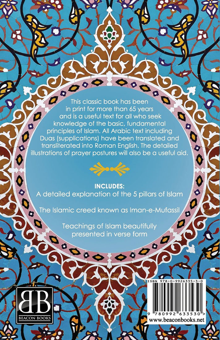 This classic book has been in print for more than 65 years and is a useful text for all those who seek knowledge of the basic, fundamental principles of Islam. All Arabic text including the Duas have been translated and transliterated into Roman English. The detailed illustrations of the prayer postures will also be a useful aid. Includes: 1. A detailed explanation of the 5 pillars of Islam 2. The creed of Islam known as Iman-e-Mufassil 3. Teachings of Islam presented in verse form A concise and clear explanation of the 5 pillars of Islam and the 7 articles of faith.