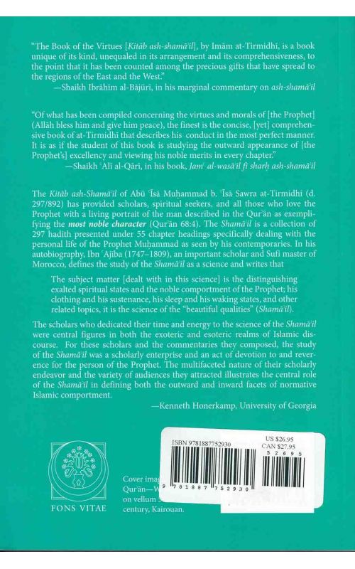 Author: Imam Muhammad ibn 'Isa at-Tirmidhi Publisher: Fons Vitae,US Size/Vol.: A5_EXTRA (17.3x23.5 cm - 6.81x9.25 in) ISBN : 9781887752930 Language : English -In Islam, two sources are used to explain the religion and its laws: the Qur'an, a revered text, and the hadith, the sayings and activities of the Prophet Muhammad as reported by friends and followers during his lifetime. This skilled translation, which includes the Arabic of one of the key Islamic texts, long-awaited in English, presents a fascinating selection of hadith compiled by the ninth-century scholar at-Tirmidhi that humanizes the Prophet for modern audiences, presenting him through the eyes of contemporaries who comment not only on his spiritual demeanor and qualities but also on his physical appearance and mannerisms including his hairdressing, his sitting posture, his sandals and turban, his armor, his favorite condiments, and his jests and laughter.