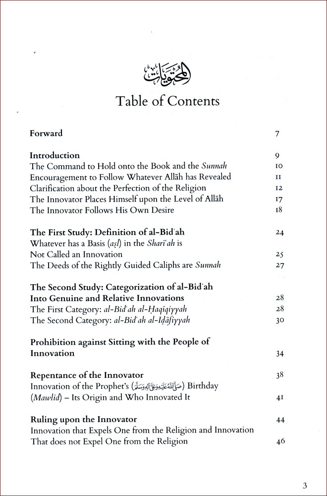 The Prophet (salallahu 'alayhi wa sallam) prohibited innovating into the Religion of Allah and he warned against al-bid'ah (innovation) and he clarified to his Ummah that every innovation in the Religion of Allah is misguidance. So he (salallahu 'alayhi wa sallam) spoke in the hadith of al-Irbad Ibn Sariyah (radi allahu anhu), which was related by Abu dawud (d.275H) and al-Tirmidhi (d.274H) who said, "An acceptable authentic hadith"