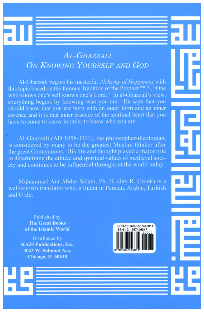 Al-Ghazzali begins his masterful Alchemy of Happiness with this topic based on th efamous Tradition of the Prophet (P.B.U.H) ?One who knows one's self knows one's Lord?. in al-Ghazzali's view, everything begins by knowing who you are. He says that you should know that you are born with an outer form and an inner essence or the spiritual heart that you have to come to know in order to know who you are.