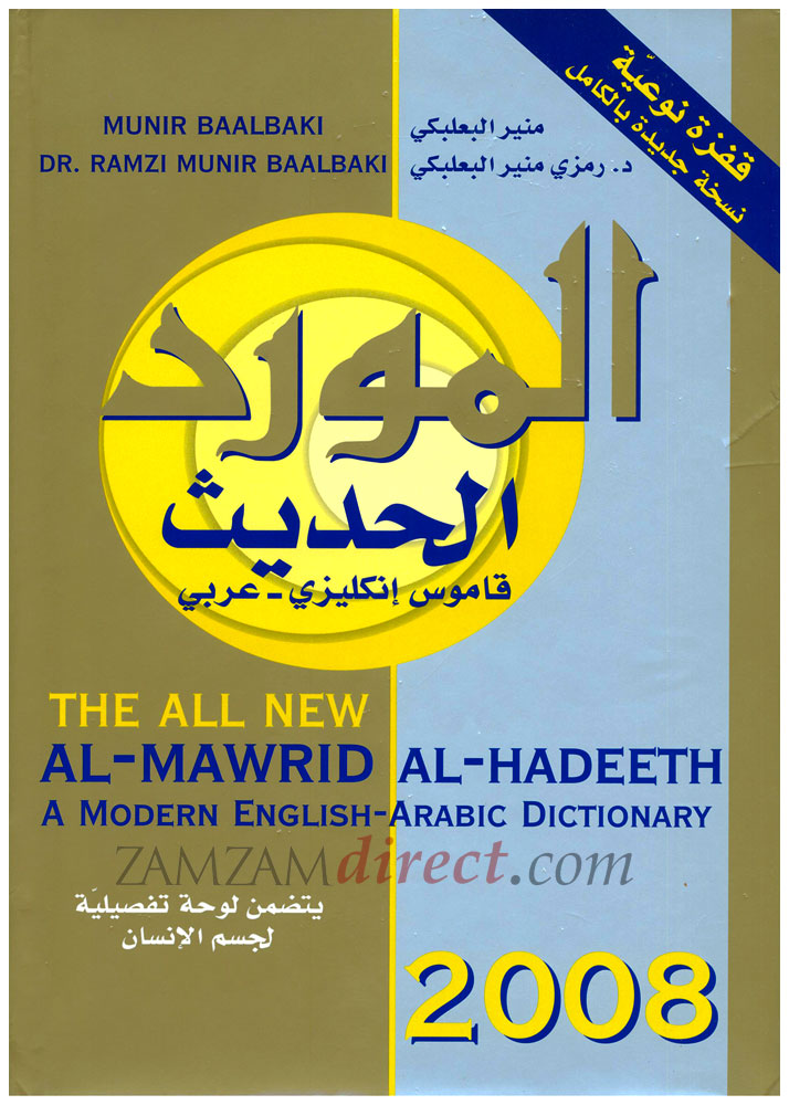 The modern dictionary of 2008 English-Arabic. It gathers the properties of Al Mawrid 2007 with the whole group of the newly added words to the English language. This practical dictionary follows the chronological and historical order that organizes the meaning with the origin of the word. Rich with examples that enables the researcher to build a complete idea about the target word.