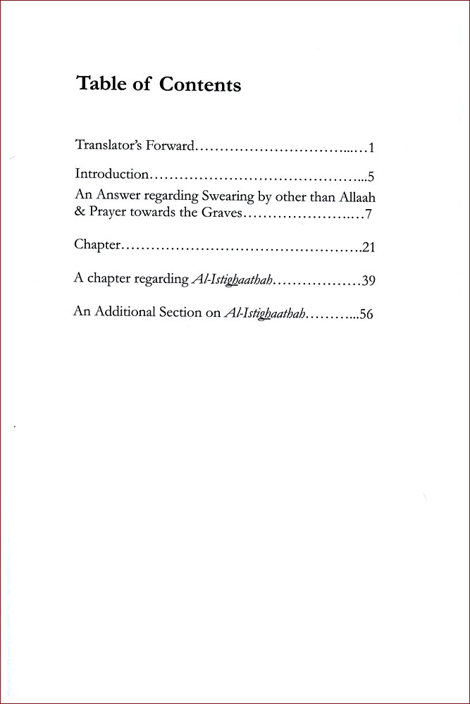It was edited and checked by Shaykh (Dr.) Aboo Muhammad Fawwaaz al-‘Awadeeal-Madkhalee. And for further clarification and benefit, an additional section related to al-Istighaathah has been added from Ibn Taymiyyah’s Qaa’idatun Jaleelatun fit-Tawassuli wal-Waseelah.