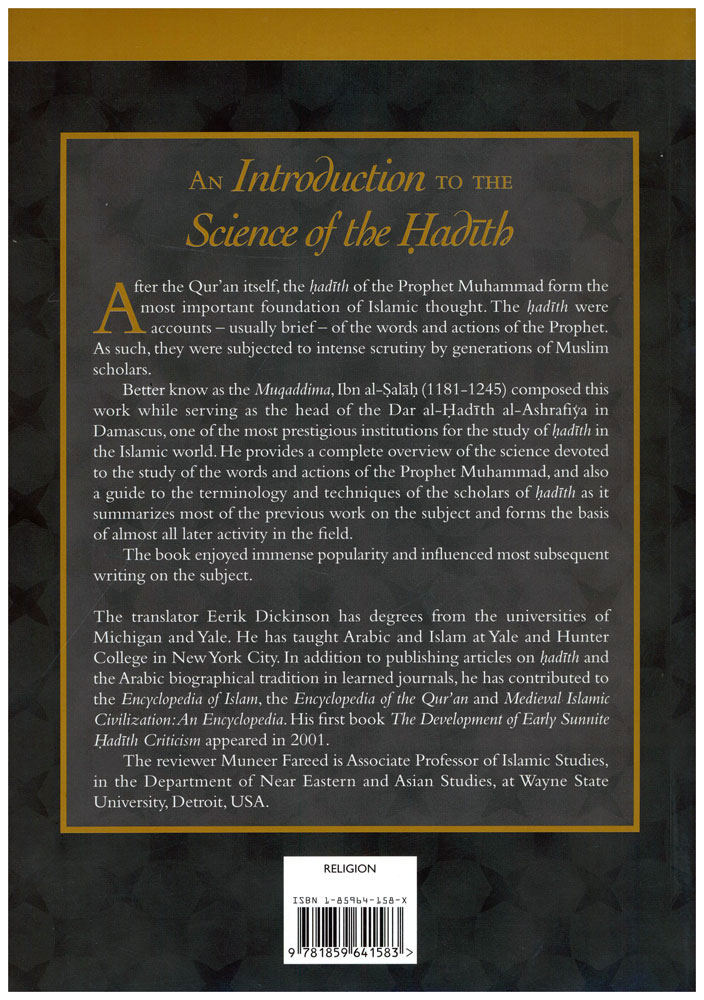 Author: Ibn al-Salah al-Shahrazuri Translator: Dr. Eerik Dickinson Publisher: Garnet Publishing Ltd. Size/Vol.: A5_EXTRA (17.3x23.5 cm - 6.81x9.25 in) ISBN : 185964158X Language : English -Binding: Paperback -