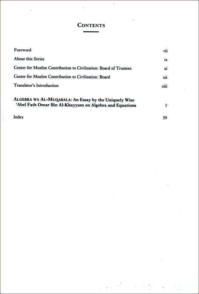 As Essay By The Uniquely Wise 'Abel Fath Omar Bin Al-Khayyam On Algebra And Equations |