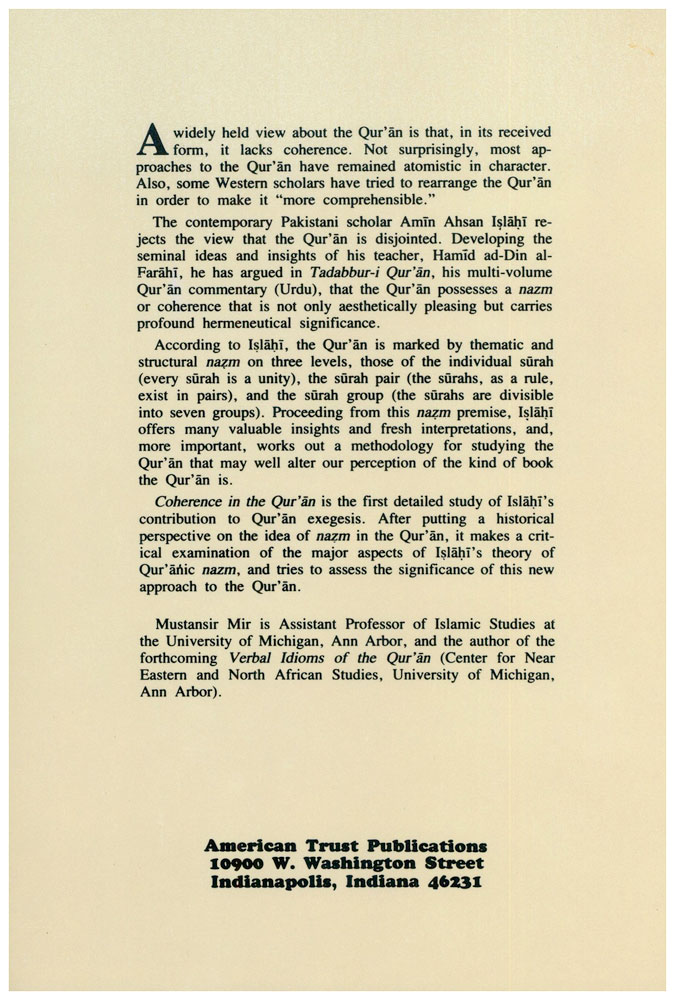 Author: Mustansir Mir Publisher: American Trust Publications - AP Size/Vol.: A5_EXTRA (17.3x23.5 cm - 6.81x9.25 in) Language : English -A5 Size (Large) - 23 x 16 x 1.1 CMBinding: Paperback -