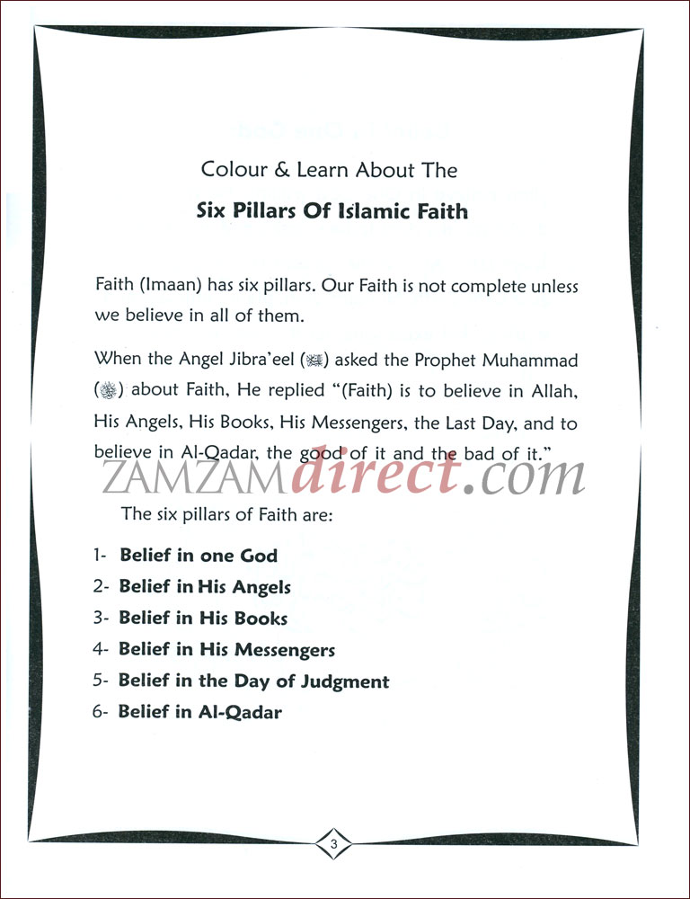 Colour and Learn about the Six Pillars Of Islamic Faith |