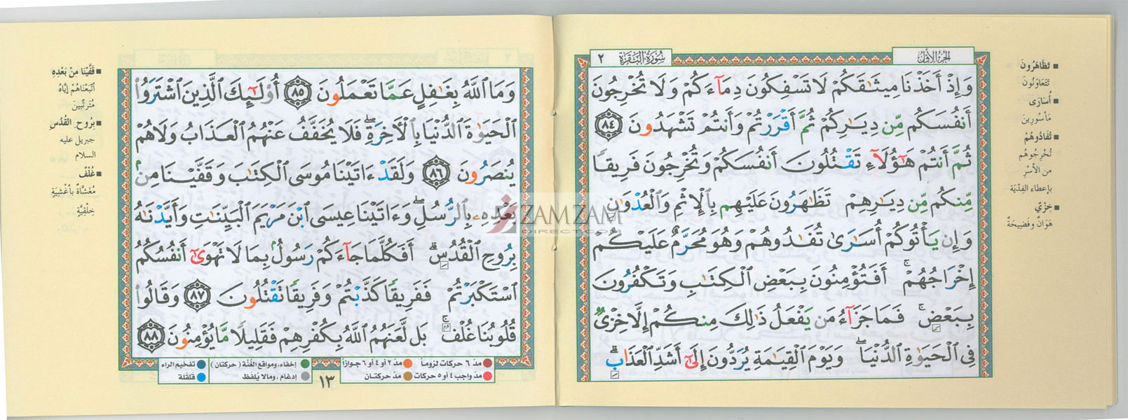 The reader will get used to reciting the Quran by using colour just as he got used to stopping at red lights and passing though green lights. By engaging I this sublime act, the reader will find him self applying 24 rules of Tajweed with ease and precision while his mind is left free to contemplate and understand the meaning of holy Quran.