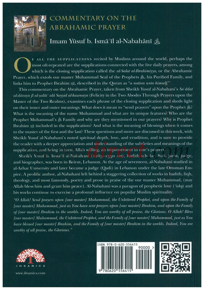 This commentary on the Abrahamic Prayer, taken from Sheikh Yusuf al-Nabahani’s Sa‘adat al-darayn fi al-salat ‘ala Sayyid al-kawnayn (Felicity in the Two Abodes Through Prayers upon the Master of the Two Realms), examines each phrase of the closing supplication and sheds light on their inner and outer meanings.