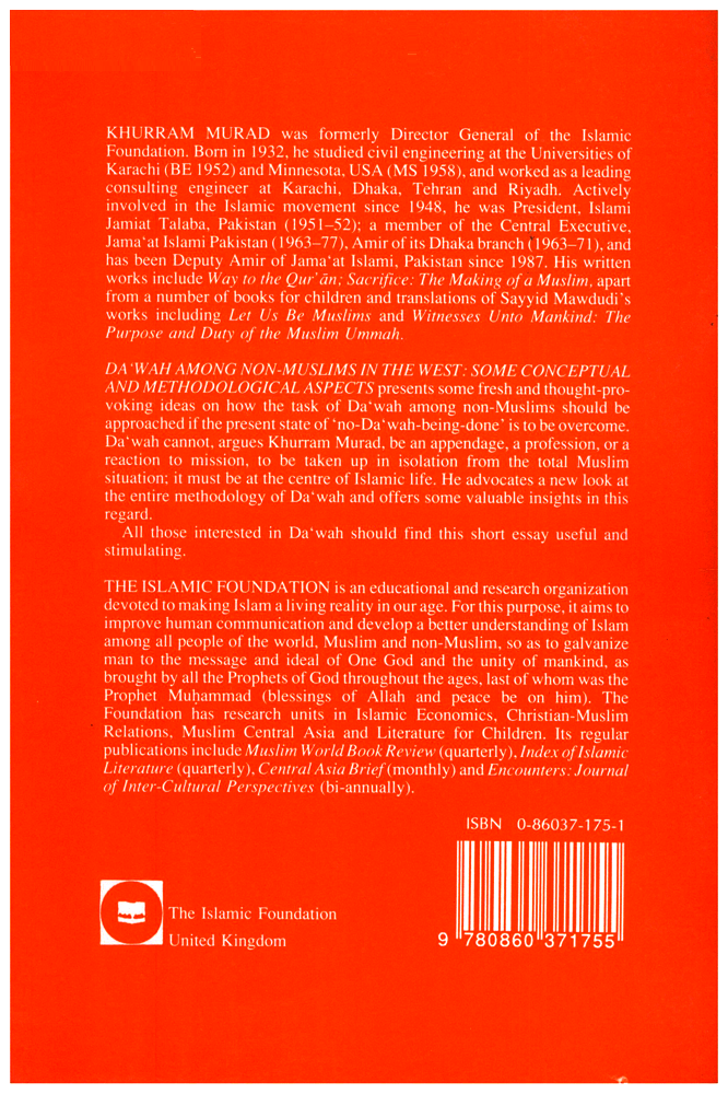 Author: Khurram Murad Publisher: The Islamic Foundation Size/Vol.: A5 (14.8x21 cm - 5.83x8.27 in) ISBN : 0860371751 Language : English -A5 Size - 21 x 14 x 0.2 CMBinding : Paperback -