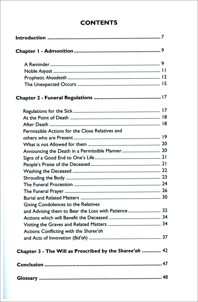 A stirring book discussing the reality of death and the realization that it should evoke in the life of every Muslim. Including a detailed description of what is to be done after someone dies e.g washing the body etc. The book concludes with a section on