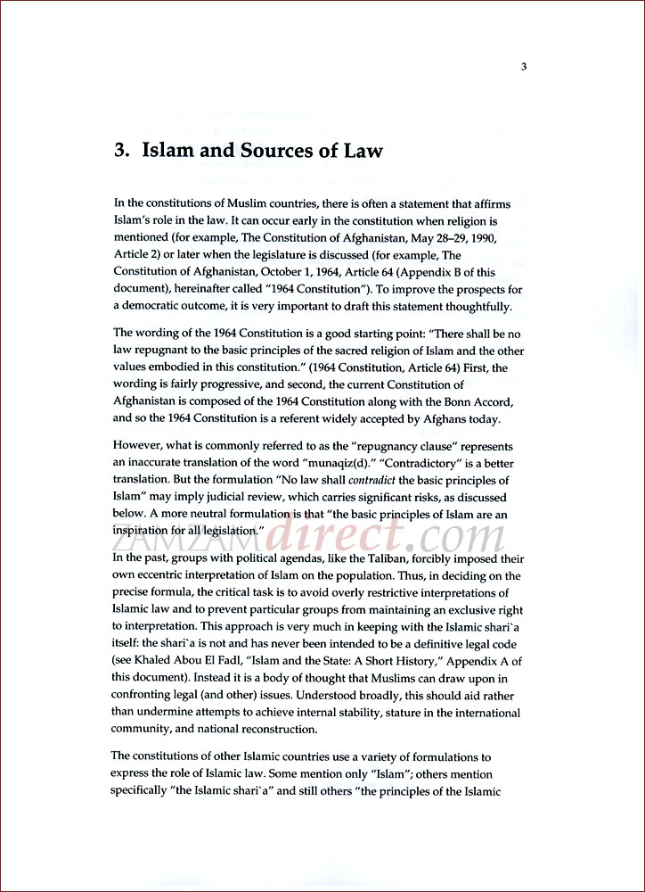 Reports on a conference held to identify ways in which the new constitution of Afghanistan could help put the country on the path to a strong, stable democracy characterized by good governance and rule of law. The participants identified practical ideas for those involved in drafting the constitution, particularly about the treatment of Islam.