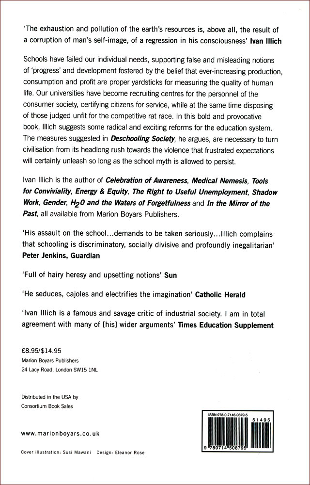Author: Ivan Illich Publisher: Marion Boyars Publishers Size/Vol.: 20 x 13 x 0.9 cm ISBN : 9780714508795 Language : English -Binding: Paperback -