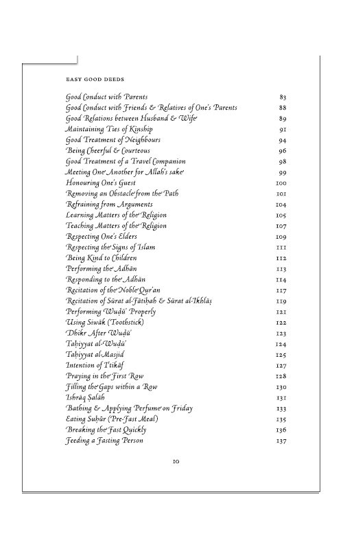 The author has highlighted actions over a wide spectrum of areas, ranging from worship to social conduct, all of which entail minimum effort but reap abundant reward nonetheless.