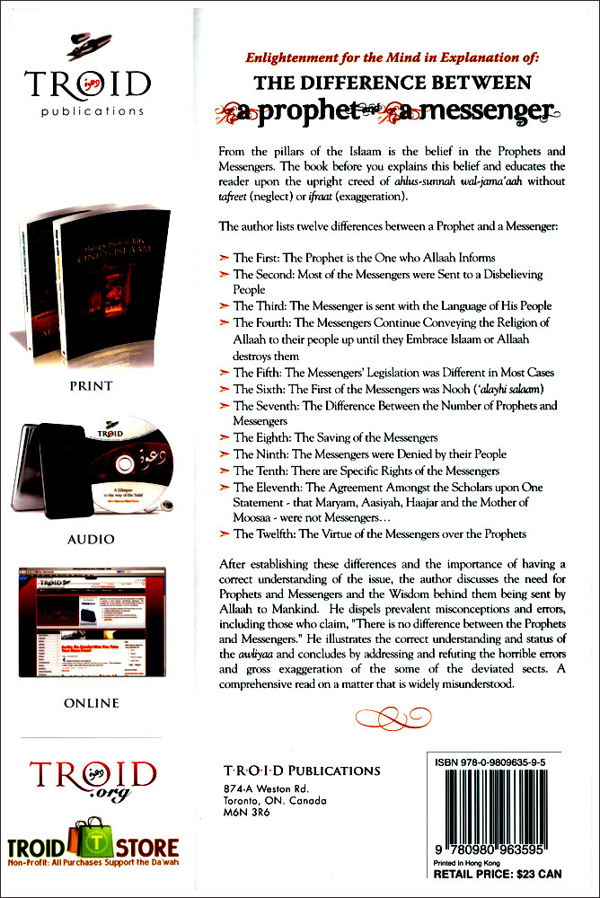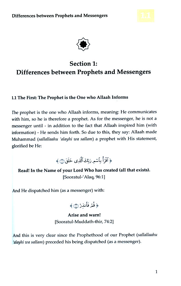 "I have resolved to compile a treatise about the issue of the differences between the Prophets and Messengers, because I saw a need for that. (This need) is due to there being some ambiguity towards understanding some of the verses and ahaadeeth connected to this great issue, and the scarcity of what has been written about this topic. Some of the contemporaries have written concerning that, proceeding upon (the notion) that there is no difference; and I consider this to be insufficient with regards to transmission of the speech and writings of the people of knowledge concerning this issue. I do not deem that I have come with something new; in my estimation, I have gathered some of the evidences and statements of the people of knowledge to make clear for the reader the difference between the Prophets and Messengers. And this distinction is important because it is linked to the ‘aqeedah and it includes giving everyone from amongst them his right; and placing the Prophets in their proper station and the Messengers in their proper station. And this occurs from a completion of honour and reverence for Allaah's Prophets and Messengers; and from the completion of Justice is giving them their rights."