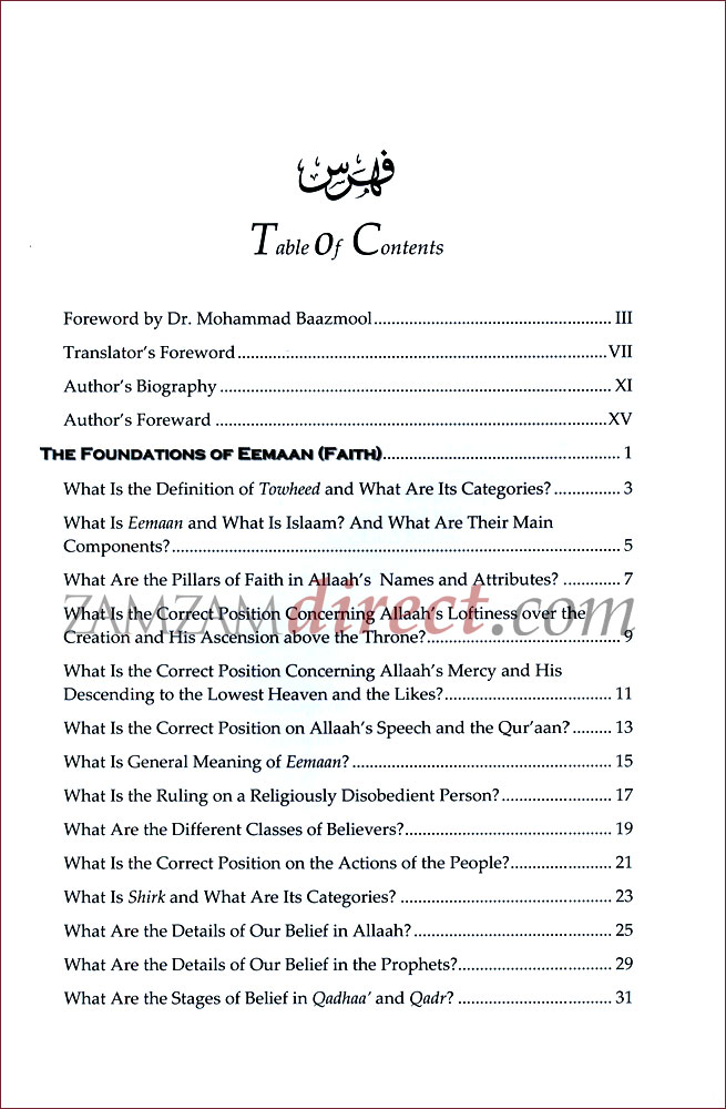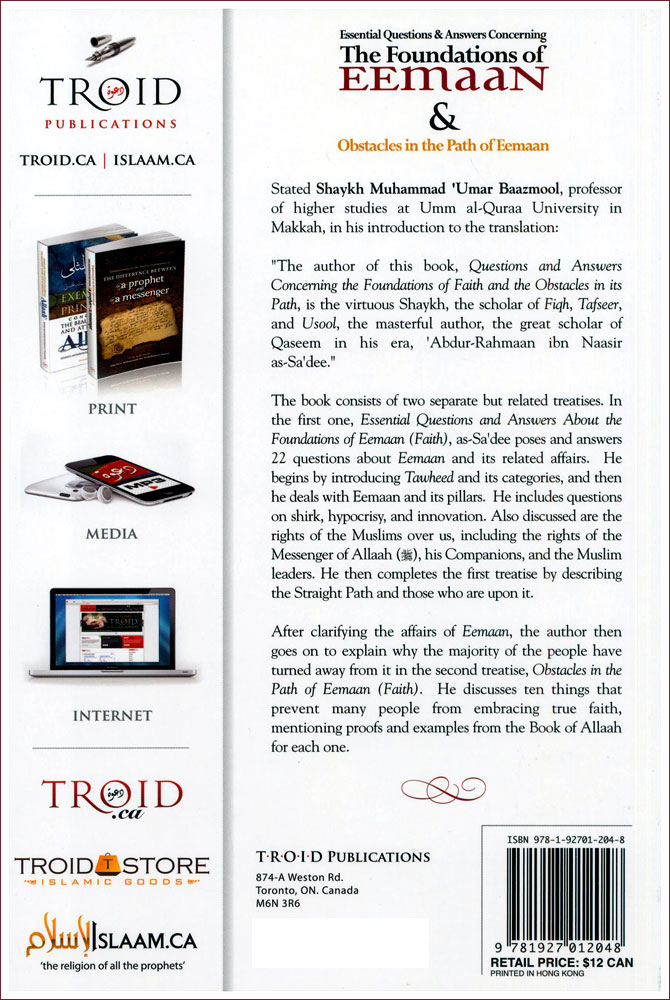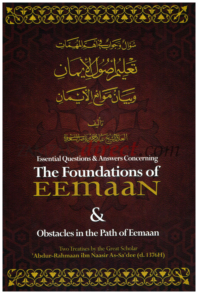"The author of this book, Questions and Answers Concerning the Foundations of Faith and the Obstacles in its Path, is the virtuous Shaykh, the scholar of Fiqh, Tafseer, and Usool, the masterful author, the great scholar of Qaseem in his era, 'Abdur-Rahmaan ibn Naasir as-Sa'dee."
