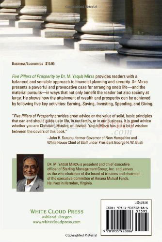 Five Pillars of Prosperity by Dr. M. Yaqub Mirza provides readers with a balanced and sensible approach to financial planning and security. Dr. Mirza presents a powerful and provocative case for arranging one’s life – and the material pursuits – in ways that not only benefit the reader but also society at large. He shows how the attainment of wealth and prosperity can be achieved by following five key activities: Earning, Saving, Investing, Spending, and Giving.