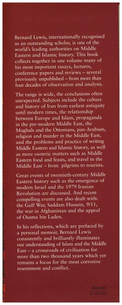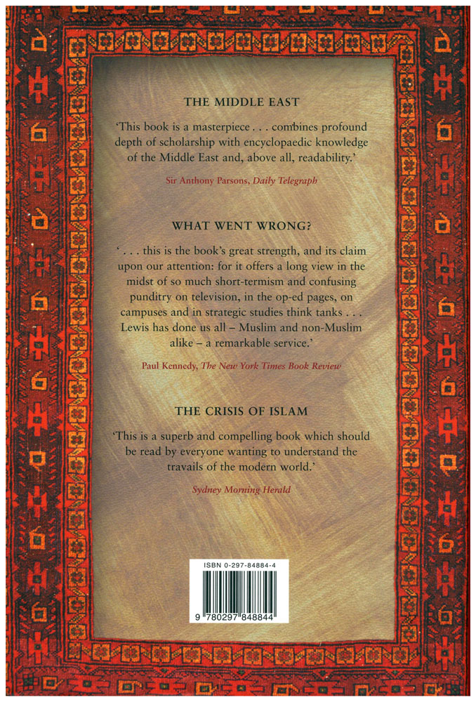 Author: Bernard Lewis Publisher: Weidenfeld & Nicolson - W & N Size/Vol.: A5_EXTRA (17.3x23.5 cm - 6.81x9.25 in) ISBN : 0297848844 Language : English -A5 Size (Large) - 24 x 16 x 4.2 CMBinding : Hardback -
