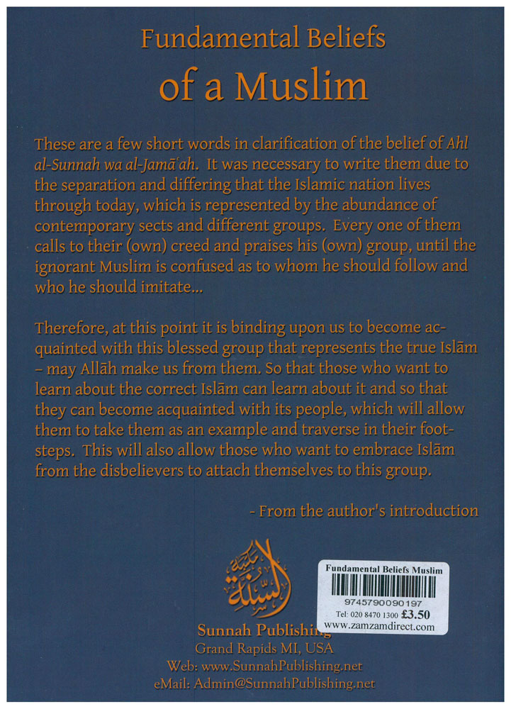 These are a few short words in clarification of the belief of Ahl-al-Sunnah wa al-Jamaah. It was necessary to write them due to the separation and differing that the Islamic nation lives through togay, which is represented by the abundance of contemporary sects and different groups. Every one of them calls to their (own) creed and praises his (own) group, until the ignorant muslim is confused as to whom he should follow and he should imitate . . .