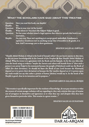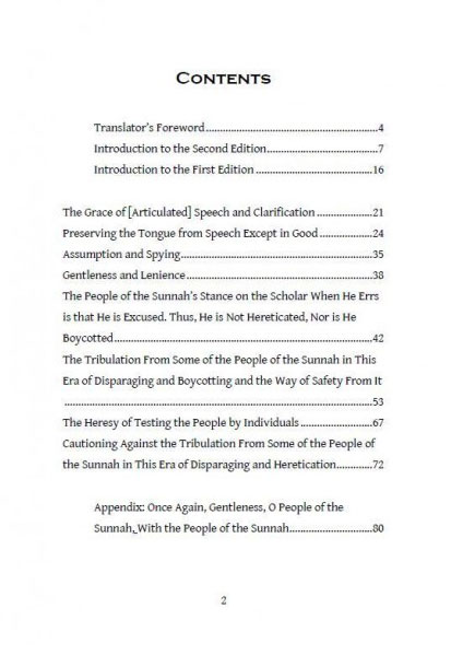 The first edition was published in 2003/1424H and was originally written as a much needed and timely advice directed to his brothers and sisters among the People of the Sunnah due to the turmoil and controversy that had occurred as a result of the defamation and heretication of certain scholars and students of knowledge.