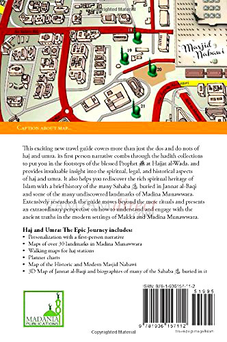 A one-of-a-kind guide that walks you through the Haj and Umra process with the help of a personable and humorous narrator. The first-person narrative highlights the dos and do nots, logistical hurdles, rich history and exhilirating experience of being a pilgrim in the Holy Land. The eight icons which punctuate the engaging narrative will help you through different aspects of the Haj and Umra. But this guide doesn't stop there. For those who want to walk the Haj, the maps of Mina, Muzdalifa, and Arafat help them navigate their way. The Madina Munawwara chapter covers the history of the blessed city including 3D maps of the original Masjid Nabawi and Jannat al-Baqi. Another section provides a biography of different Sahaba buried in Jannat al-Baqi and their locations. Revisit the time of the blessed Prophet (sa). The guide covers a complete history with 9 full-page maps of 34 undiscovered landmarks in Madina Munawwara and 9 landmarks within Masjid Nabawi itself. The color-coded guide is thoroughly-researched with over 300 hadith cited and over 100 books and articles referenced for your peace of mind. Note that this guide is comprehensive and is good for all three types of Haj, and even for pilgrims planning their next Umra only trip.