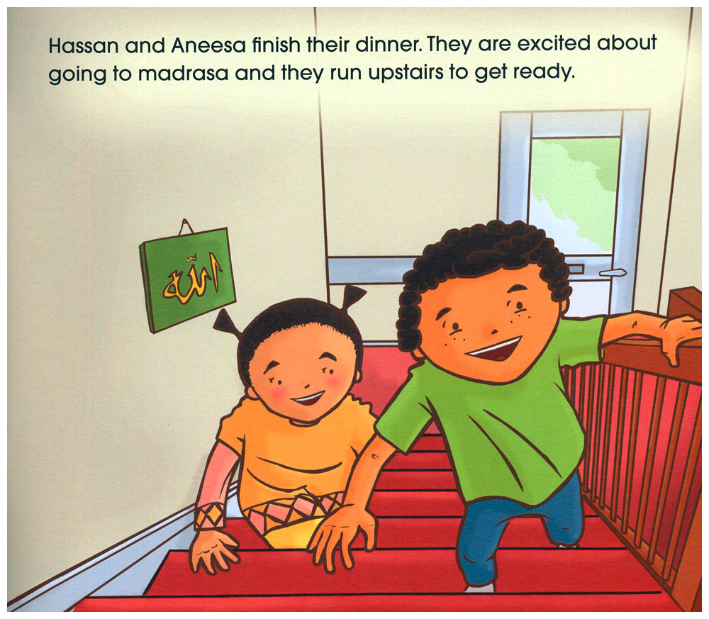 Hassan and Aneesa are going to madrasa. At madrasa they will meet new friends and learn about Islam. Follow them as they get ready and go, for the first time, to madrasa.
