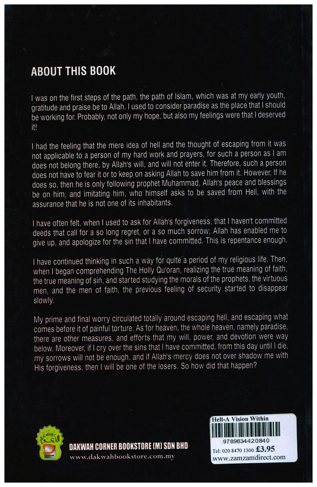 "I was on the first steps of the path, the path of Islam, which was at my early youth, gratitude and praise be to Allah. I used to consider paradise as the place that I should be working for. Probably, not only my hope, but also my feelings were that I deserved it! I had the feeling that the mere idea of hell and the thought of escaping from it was not applicable to a person of my hard work and prayers, for such a person as I am does not belong there, by Allah’s will, and will not enter it. Therefore, such a person does not have to fear it or to keep on asking Allah to save him from it.