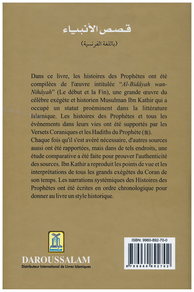 Author: Ibn Kathir Publisher: Darussalam Publishers & Distributors Size/Vol.: A5_EXTRA (17.3x23.5 cm - 6.81x9.25 in) ISBN : 9960892700 Language : French -A5 Size (Large) - 23 x 15 x 3 CMPages: 581 -