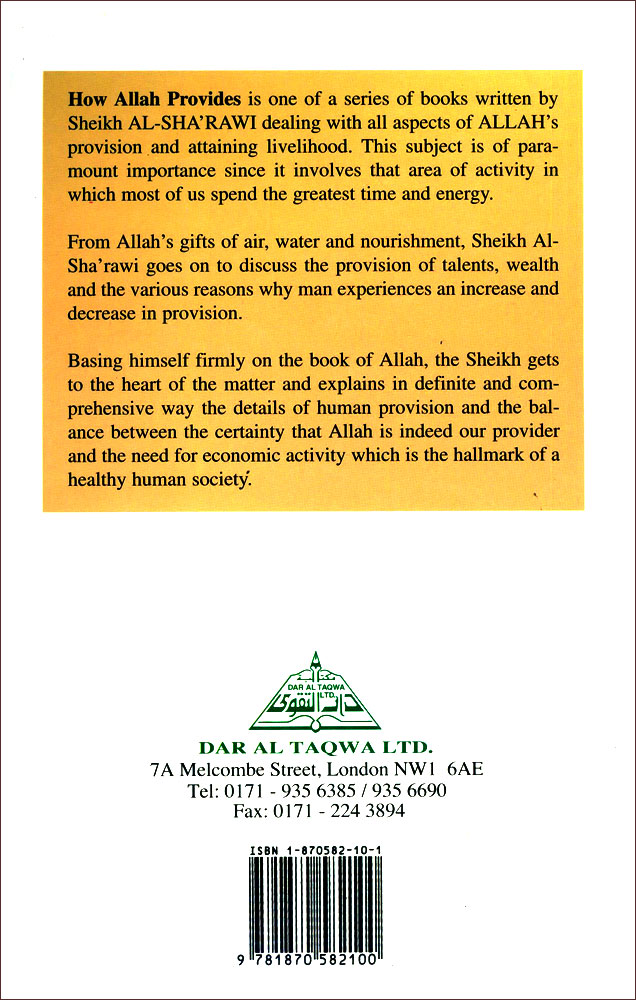 Author: Muhammad M. Al-Sharawi Publisher: Dar Al-Taqwa Ltd. Size/Vol.: A5 (14.8x21 cm - 5.83x8.27 in) ISBN : 1870582101 Language : English -Binding: Paperback -