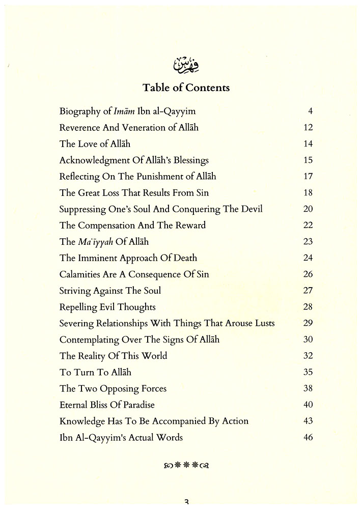 In an age of consumerism and materialism, the faith of the Muslim is tested and 'ruled on a daily bans in the tact of the waves of immorality and corruption. Imam Ibn Al-Qayyim discusses twenty practical measures based on the Qur'an and Sunnah for the servant to implement in order to overcome the lure of can and disobedience. This book explains these invaluable directives cited by Imam Ibn Al-Qayyim in a simple and clear manner.