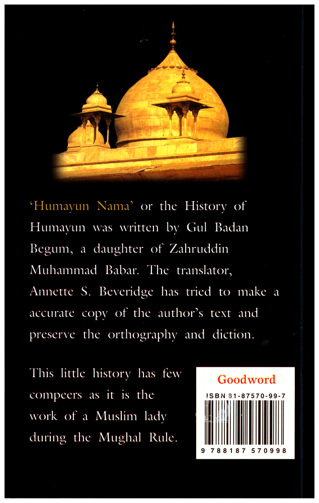 Author: Gul-Badan Begam Publisher: Goodword Books Size/Vol.: A5 (14.8x21 cm - 5.83x8.27 in) ISBN : 8187570997 Language : English -A5 Size - 22 x 14 x 2.4 CMBinding : Paperback -