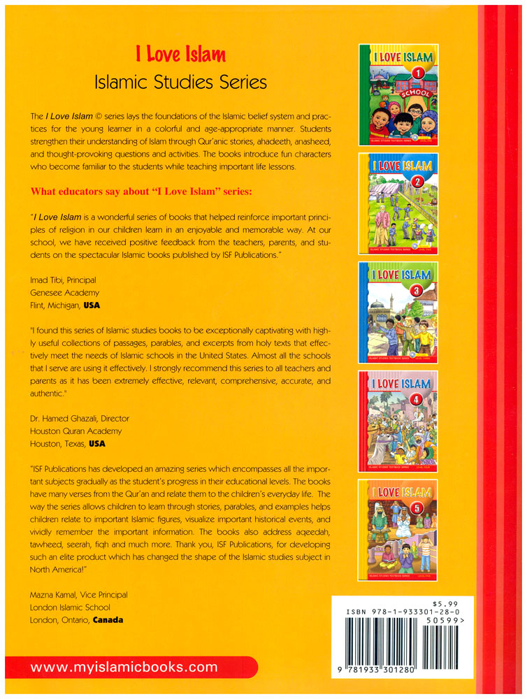 I Love Islam is a series of Islamic studies textbooks that gradually introduces Muslim students to the essentials of their faith and bring to light historic and cultural aspects of Islam. Each book of the series is designed to emphasize the aspects of Islam which are appropriate for the grade level.