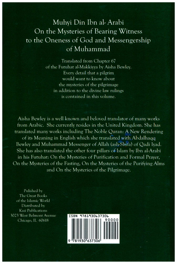 Ibn al-Arabi was born in Andalusia in Muslim Spain. He is the greatest exponent of Islamic doctrines including its metaphysical and cosmological aspects. In this work, however, he describes in simple terms the mysteries of bearing witness.