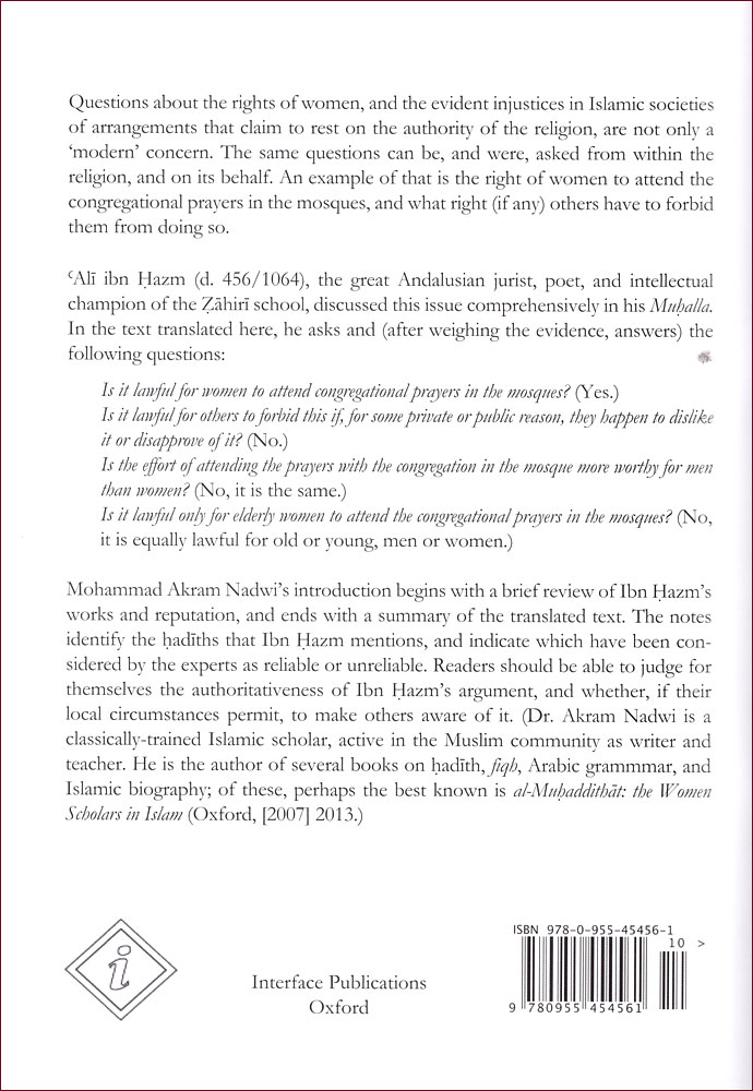 Ibn Hazm on the lawfulness of women attending prayers in the mosque, presented, translated, and annotated by Dr Mohammad Akram Nadwi, author of Al-Muhaddithat - the 57-volume masterpiece on women scholars of Islam.