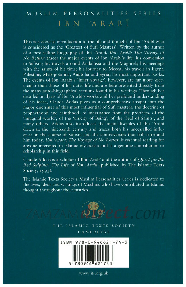 Written by the author of a best-selling biography of Ibn Arabi, Ibn Arabi: The Voyage of No Return traces the major events of Ibn Arabi’s life: his conversion to Sufism; his travels around Andalusia and the Maghreb; his meetings with the saints of his time; his journey to Mecca; his travels in Egypt, Palestine, Mesopotamia, Anatolia and Syria; his most important books.