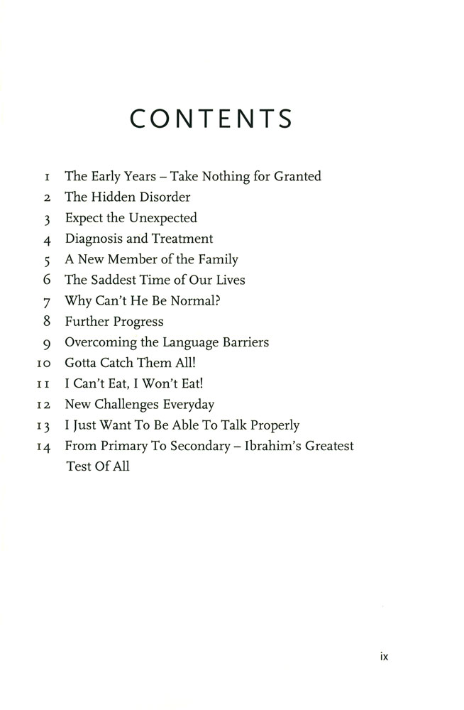 Written in a simple and straightforward style, the book traces Ibrahim¡¦s progress at each stage of his early life. It highlights his family¡¦s bewilderment as they try to make sense of his unusual behaviour and inappropriate speech.