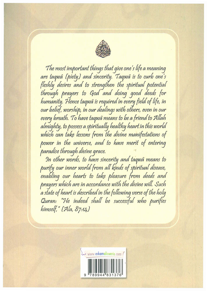 The most important things that give one’s life a meaning are taqwâ (piety) and sincerity. Taqwâ is to curb one’s fleshly desires and to strengthen the spiritual potential through prayers to God and doing good deeds for humanity. Hence taqwâ is required in every field of life, in our belief, worship, in our dealings with others, even in our every breath. To have taqwâ means to be a friend to Allah almighty, to possess a spiritually healthy heart in this world which can take lessons from the divine manifestations of power in the universe, and to have merit of entering paradise through divine grace.