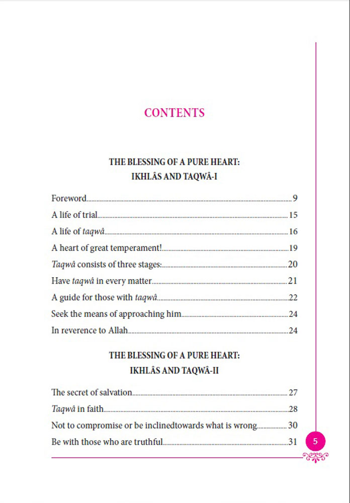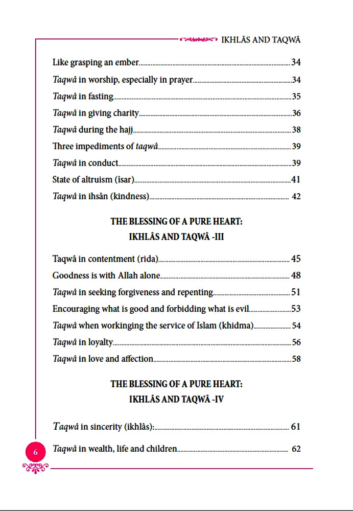 In other words, to have sincerity and taqwâ means to purify our inner world from all kinds of spiritual disease, enabling our hearts to take pleasure from deeds and prayers which are in accordance with the divine will. Such a state of heart is described in the following verse of the holy Quran: “He indeed shall be successful who purifies himself,” (Ala, 87:14)