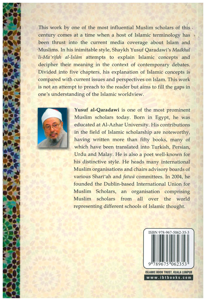 Author: Yusuf Al-Qaradawi Publisher: Islamic Book Trust - IBT Size/Vol.: A5 (14.8x21 cm - 5.83x8.27 in) ISBN : 9785062353 Language : English -Binding: Paperback -