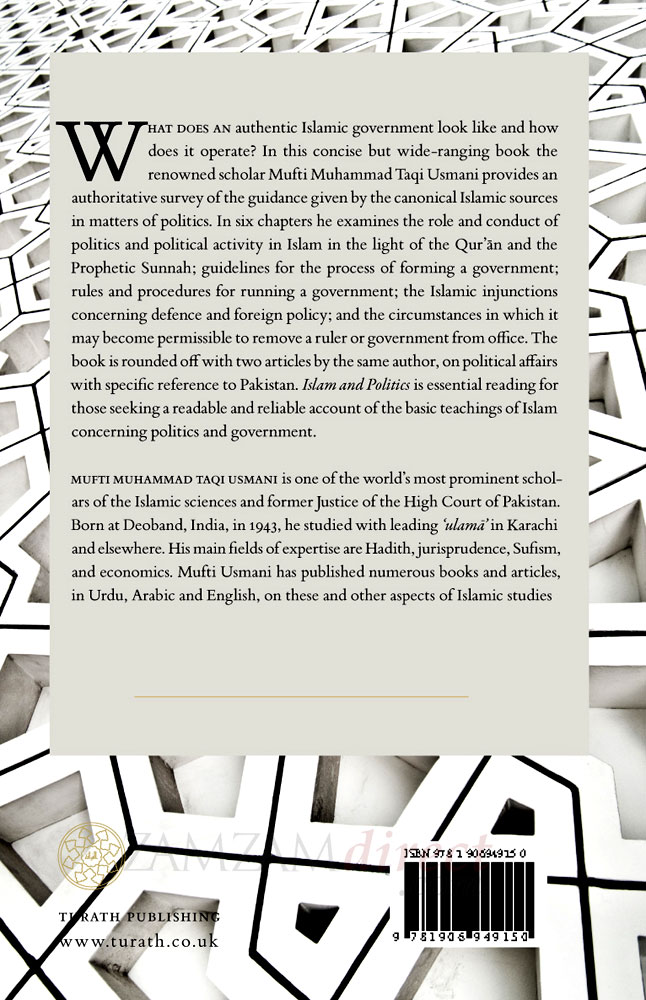 What does an authentic Islamic government look like and how does it operate? In this concise but wide-ranging book the renowned scholar Mufti Muhammad Taqi Usmani provides an authoritative survey of the guidance given by the canonical Islamic sources in matters of politics.