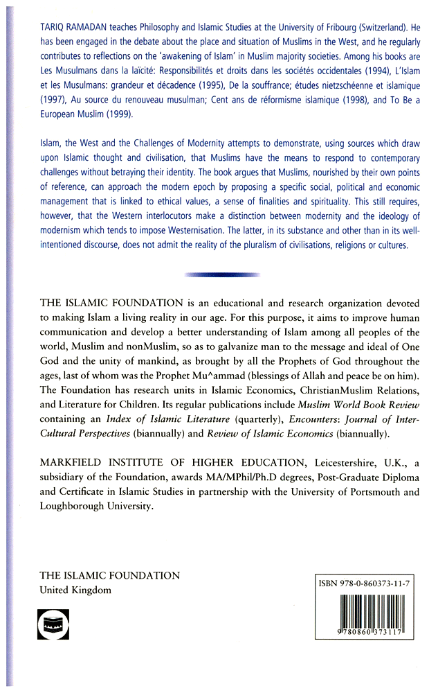 Author: Tariq Ramadan Publisher: The Islamic Foundation Size/Vol.: A5 (14.8x21 cm - 5.83x8.27 in) ISBN : 9780860373117 Language : English -A5 Size - 22 x 14 x 2.2 CMBinding : Paperback -