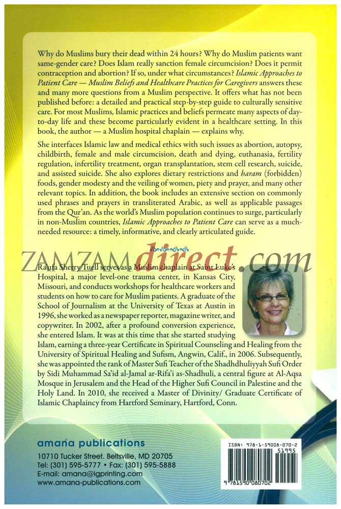 Why do Muslims bury their dead within 24 hours? Why do Muslim patients want same-gender care? Does Islam really sanction female circumcision? Does it permit contraception and abortion? If so, under what circumstances? Islamic Approaches to Patient Care - Muslim Beliefs and Healthcare Practices for Caregivers answers these and many more questions from a Muslim perspective. It offers what has not been published before: a detailed and practical step-by-step guide to culturally sensitive care. For most Muslims, Islamic practices and beliefs permeate many aspects of day-to-day life and these become particularly evident in a healthcare setting. In this book, the author - a Muslim hospital chaplain - explains why.
