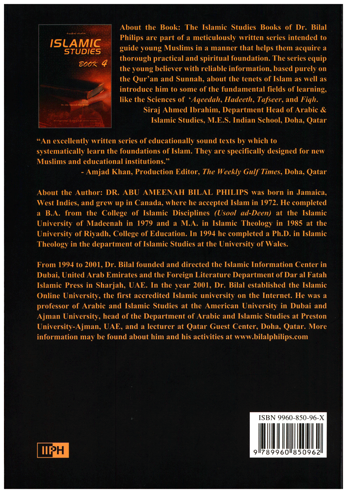 The "Islamic Studies" series of books by Dr. Bilal Philips are part of a meticulously written series intended to guide young Muslims in a manner that helps them acquire a thorough practical and spiritual foundation. The series equip the young believer with reliable information, based purely on the Qur'an and Sunnah, about the tenets of Islam as well as introduce him to some of the fundamental fields of learning, like the sciences of 'aqeedah, hadeeth, tafseer, and fiqh.