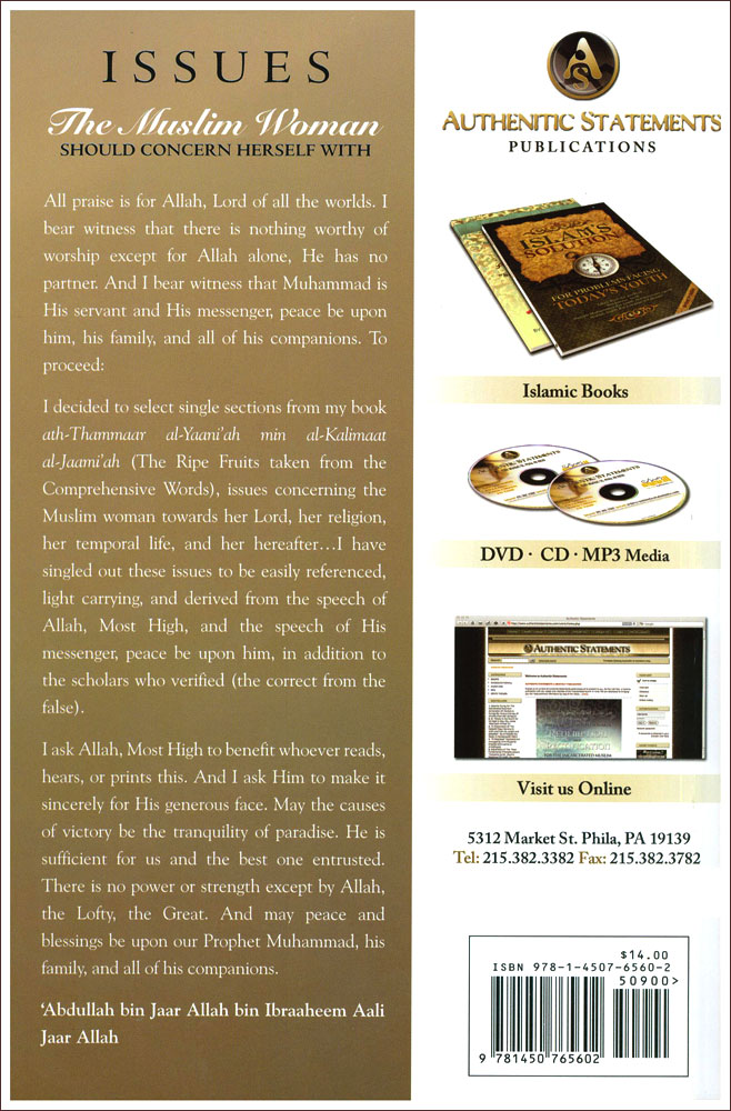 Author: Ash-Shaykh 'Abdullah bin Jaar Allah bin Ibraaheem al-Jaar Allah Publisher: Authentic Statments Publications Size/Vol.: A5 (14.8x21 cm - 5.83x8.27 in) ISBN : 9781450765602 Language : English -Binding : Paperback -