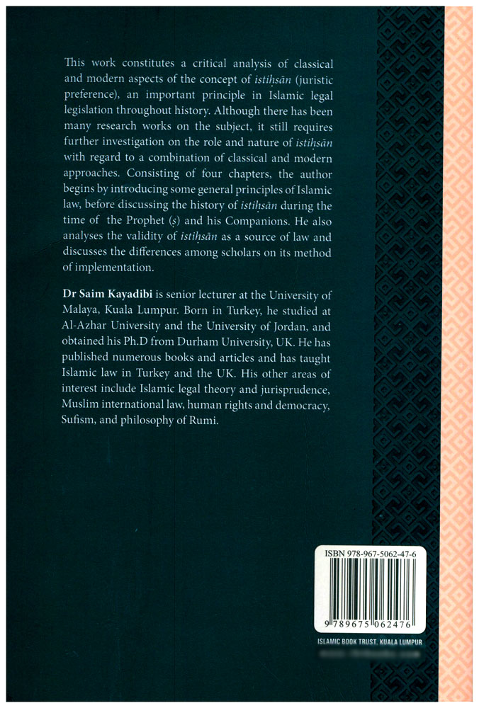 Author: Saim Kayadibi Publisher: Islamic Book Trust - IBT Size/Vol.: A5_EXTRA (17.3x23.5 cm - 6.81x9.25 in) ISBN : 9789675062476 Language : English -A5 Size (Large) - 23 x 15 x 2.2 CM -