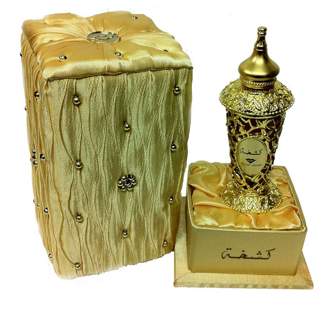 Kashkha, a stylish and elegant fragrance, makes a definitive statment. Kashkha is a modern, oriental perfume that is meant to embody style. Its unique fragrance starts with floral spicy top otes of bergamot, apple, and cinnamon complemented by the icy woody middle notes of agarwood, cardamom, and saffron. The base musky woody notes of cedar, amber and musk add body to the fragrance, creating a sensual aura. Kashkha's soft and unsual fragrance is in an exquisitely engraved gold triangular bottle. The intricate bottle is placed in a plush gold satin continuing the signature theme of "stylish femininity."
