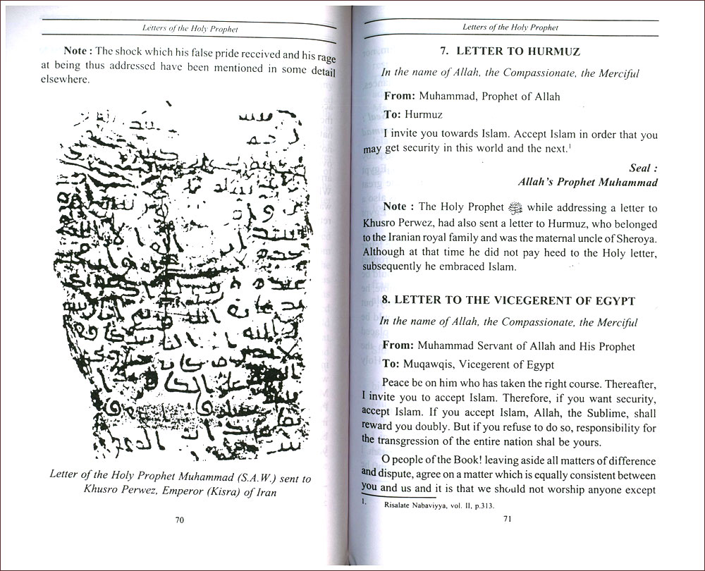 The book by Sultan Ahmad Qureshi is a compilation of the letters of The Prophet Mohammad (SaW) which were sent to Emperors, Kings, Governors etc. to invite and to preach Islam to them. The treatise, pacts, agreements, which is a lime-light, show the right and straight path, to every Muslim to be used in day-today life.